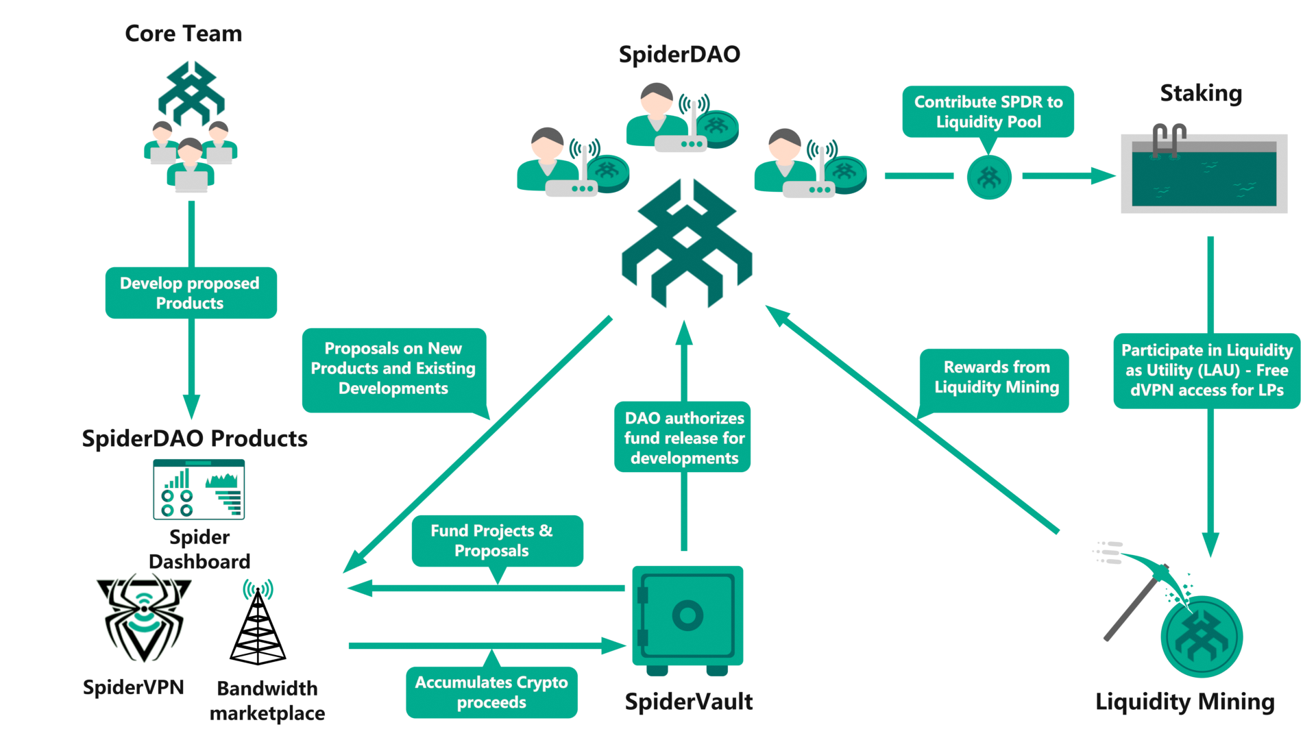 SpiderDAO will be the orchestrator of the ecosystem building and maintaining these services.